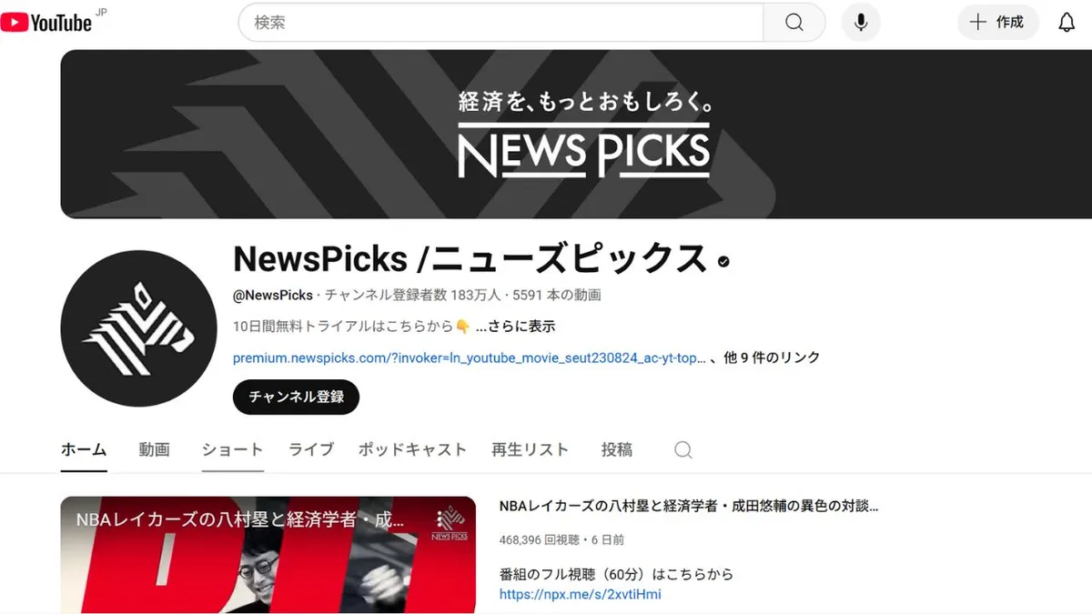 Source: NewsPicks Official YouTube Channel (Approx. 1.75 million subscribers from September 2025)
