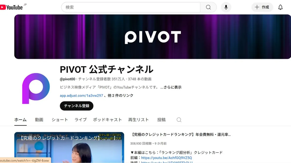 PIVOT (@pivot00) is one of the largest business-focused video media channels on YouTube in Japan, boasting approximately 3.38 million subscribers. This channel delivers daily free content, primarily featuring in-depth interviews with some of the most influential business figures of the Reiwa era—entrepreneurs, CEOs, creators, and executives—highlighting their real-life experiences and insights.