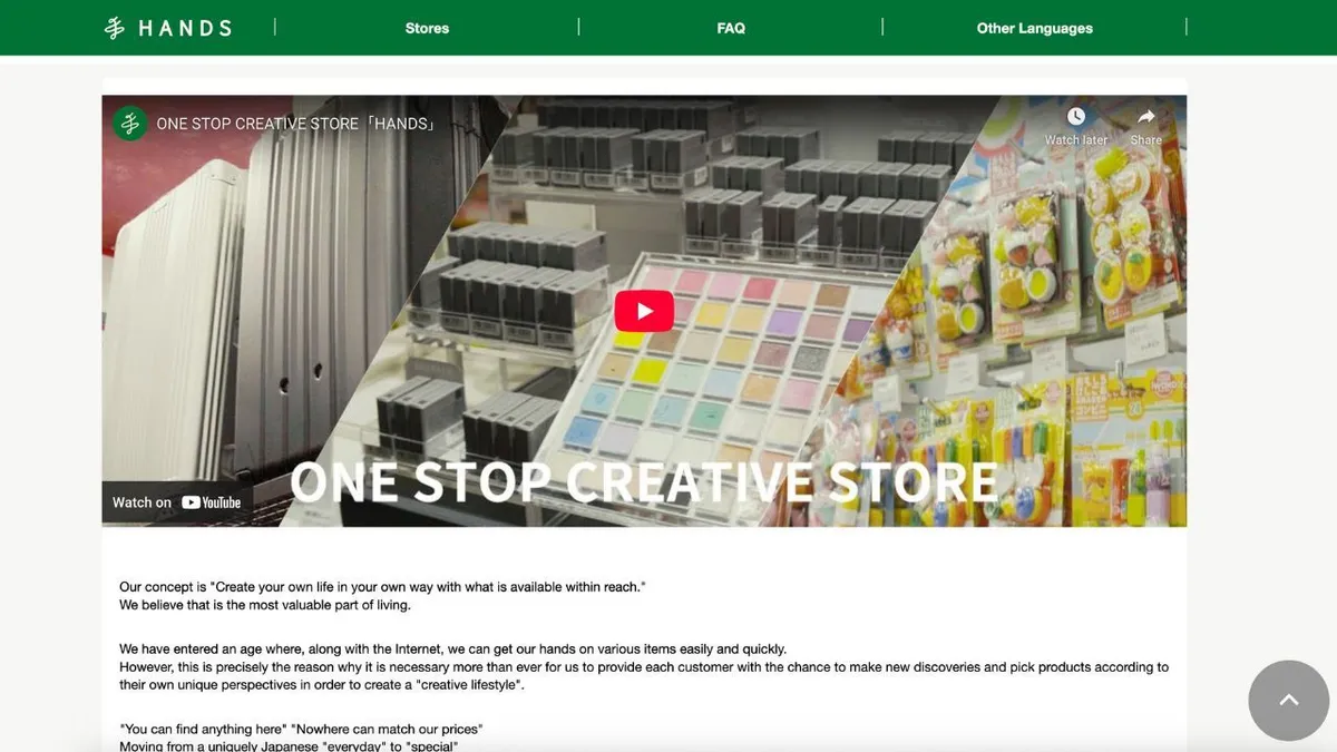 Source: Tokyu Hands Homepage