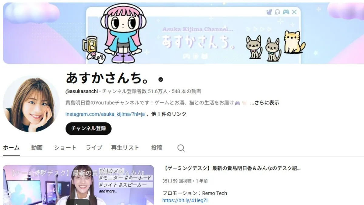 Asuka Kijima is a Japanese fashion model, entertainer, and YouTuber who shares her everyday life, home lifestyle, fashion routines, and passion for gaming on her channel. She brings a professional polish from her modeling and entertainment background, making her content aspirational but still relatable. As a former weather presenter and model, she has a public profile that adds credibility and trust in lifestyle and personal brand content. On her channel (often under the title Asukasanchi), she shares daily routines, home decor, fashion, and her personal lifestyle, resonating with viewers interested in a modern, polished Japanese lifestyle.