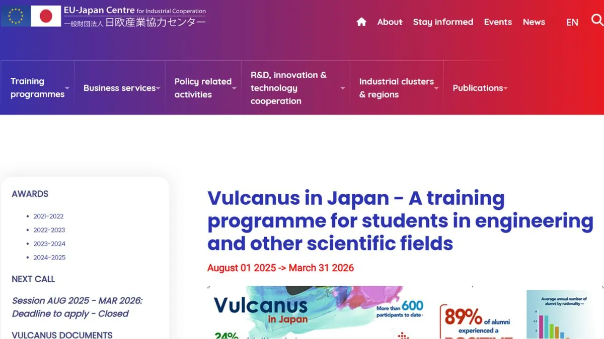 - “Vulcanus in Japan” for STEM students from EU member states,
