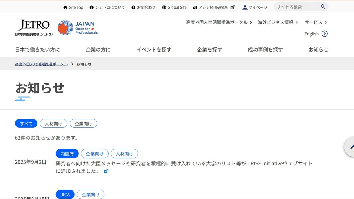 To strengthen the global competitiveness of Japanese companies, JETRO (Japan External Trade Organization) and the Small and Medium Enterprise Agency have partnered to launch the “Internship Program to Promote Internationalization.” This program is a dual-support initiative designed to both host international students already in Japan and create internship opportunities for students and young professionals coming from abroad, with a particular focus on connecting them to small and medium-sized enterprises (SMEs).