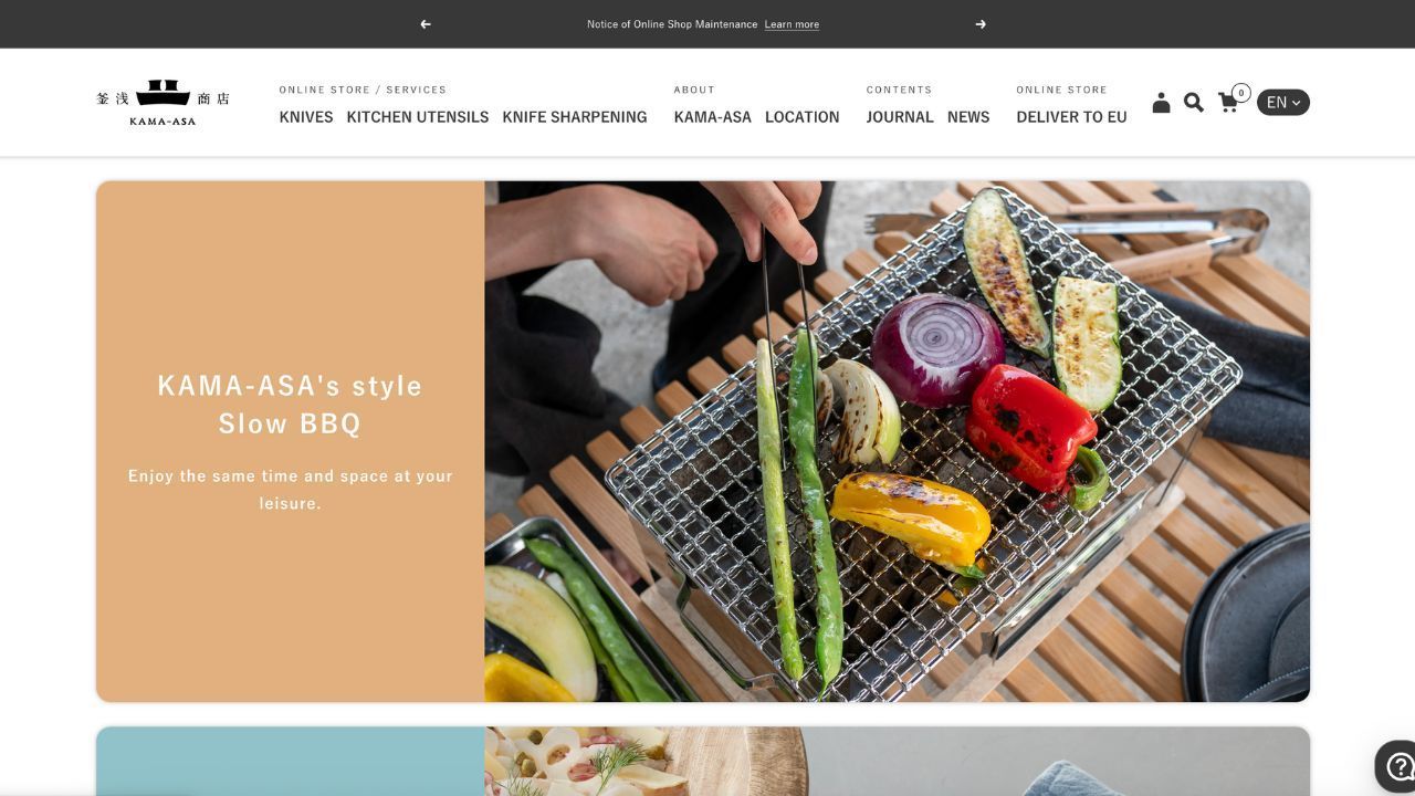 Founded in 1908, Kama-asa combines tradition with innovation, offering a wide range of knives and other professional-grade kitchen tools. Their focus on quality and usability has made them a go-to shop for chefs throughout Japan. The clean, modern shop layout provides a welcoming shopping experience, especially for first-time buyers.