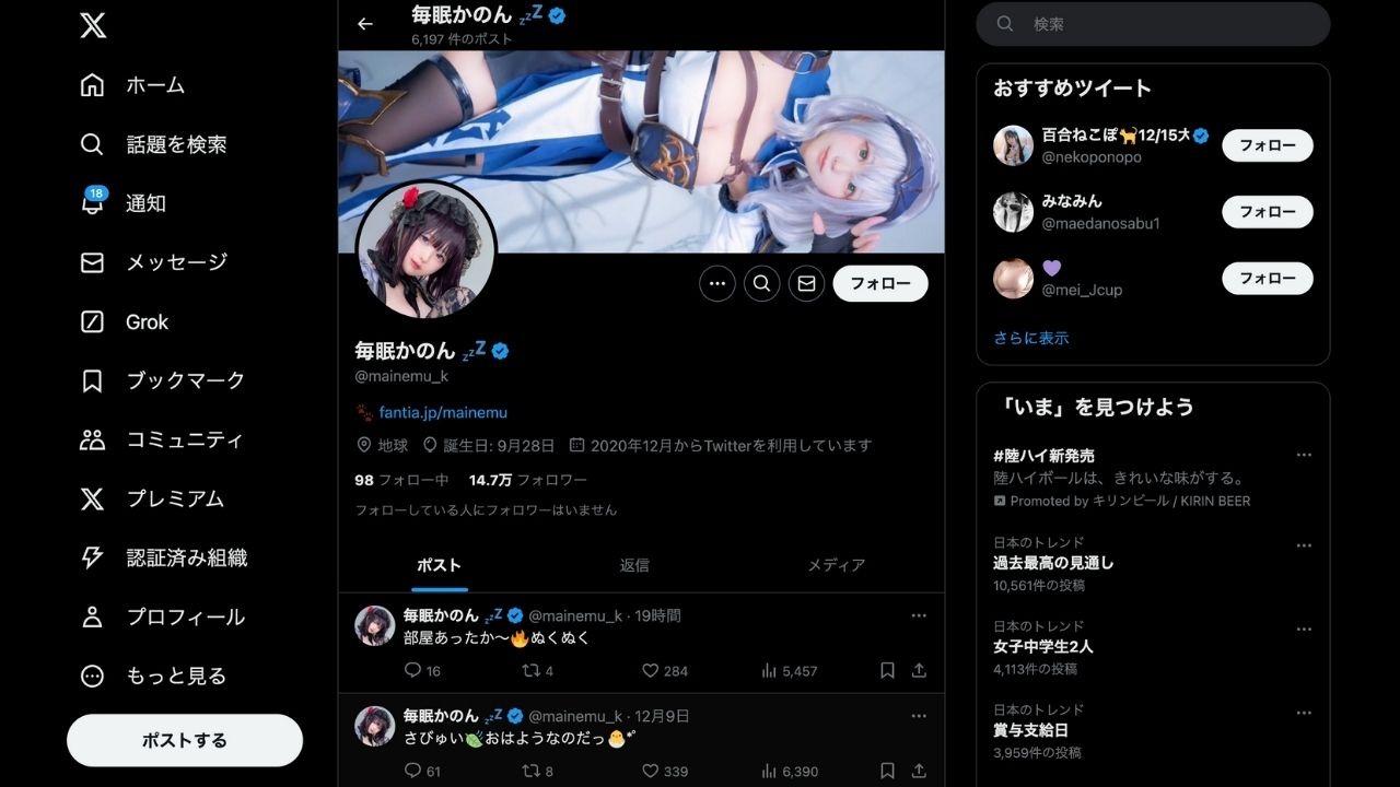 Ashu Nekota is an anime influencer known for her warm, cheerful personality. Her cosplay resonates with both children and adults, earning her a diverse fan base across all ages. In addition to her costumes, her costume-making tutorials and introduction videos are also widely enjoyed.