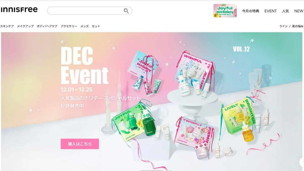 Innisfree is a well-known Korean brand that emphasizes natural ingredients, sourced from Jeju Island, and offers an affordable range of skincare and beauty products. Often brought back as souvenirs by travelers, Innisfree’s products are prized for their quality and value. With an expanding presence across Japan, Innisfree provides accessible and high-quality options that appeal to a broad consumer base seeking nature-inspired skincare.