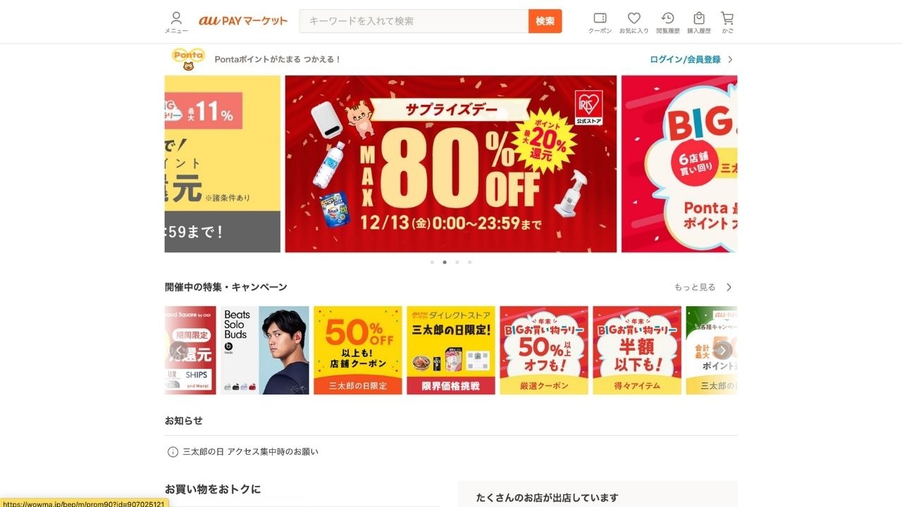 AU Pay Market, previously known as Wowma!, is an online shopping platform operated by the KDDI Group. It offers a highly convenient shopping experience, particularly for AU mobile users. One of its key strengths is the integration with KDDI's mobile services, which allows AU users to earn and redeem points while taking advantage of cash-back offers, adding extra value to their purchases. The platform also boasts an extensive product lineup that spans a wide variety of categories, from everyday essentials to specific items, ensuring there’s something for everyone. Additionally, AU Pay Market is known for its user-friendly interface, which makes browsing and purchasing straightforward, further enhancing its appeal. These features have helped AU Pay Market build a loyal customer base and establish itself as a key player in Japan’s competitive e-commerce landscape.