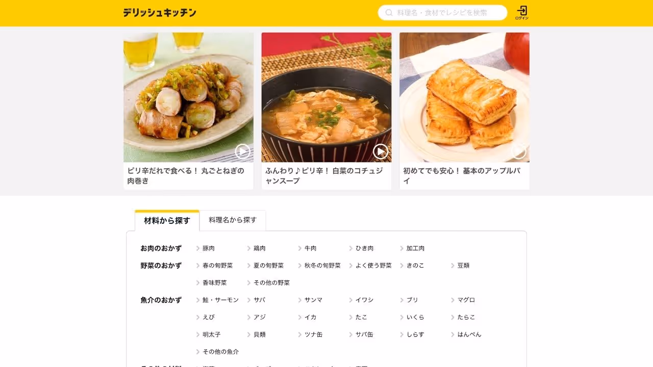 Rakuten Recipe, operated by Rakuten, offers a wide variety of user-submitted recipes. Rakuten members can earn points by sharing their recipes, creating an active community. The site features practical, easy-to-make home-cooking recipes, and users can conveniently purchase ingredients through Rakuten Ichiba, making it an all-in-one platform for both recipe searching and shopping.