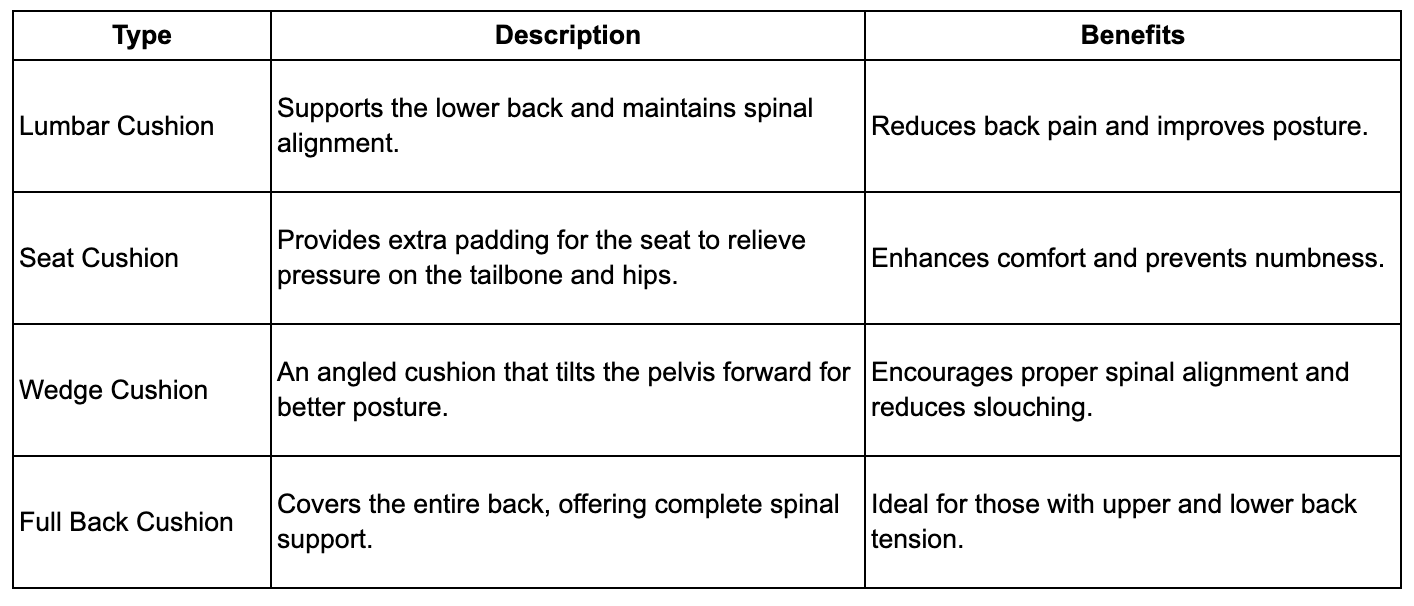 Types of Relaxation Cushions: