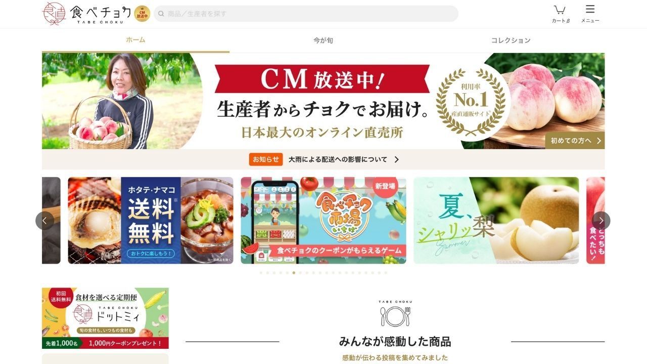 Tabe Choku is a popular Japanese subscription platform that allows users to order fresh, seasonal ingredients directly from passionate farmers and fishers across Japan. With over 1 million users, the service covers a wide range of categories, including vegetables, fruits, seafood, meat, and eggs. Orders are typically harvested and shipped within 24 hours, ensuring top-tier freshness. Users can check producer profiles and their farming or fishing methods before making a purchase. Their new service, Dot Me, lets users customize regular deliveries of staple foods, such as eggs or vegetables, and add seasonal varieties. Especially valuable for smaller or working households, Tabe Choku’s system offers flexibility and peace of mind. With interactive reviews and communication between producers and consumers, Tabechoku is more than a marketplace—it's a platform that connects people through food.