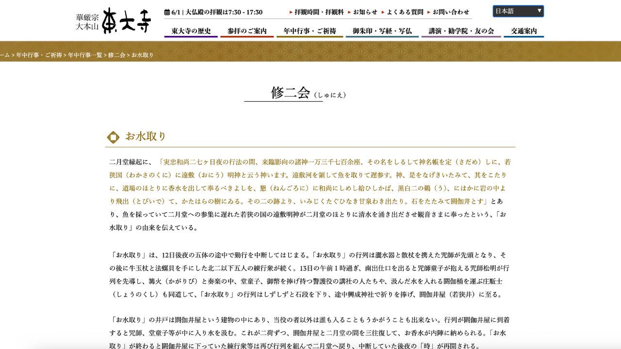 Held at the historic Todai-ji Temple in Nara, Omizutori is a Buddhist event that dates back over 1,200 years. It constitutes the final rite in observance of the two-week-long Shuni-e ceremony, and its highlight is the evening fire ceremony, where monks swing giant flaming torches over the temple balconies to cleanse sins and bring good luck. The ritual atmosphere and ancient setting make it unforgettable.