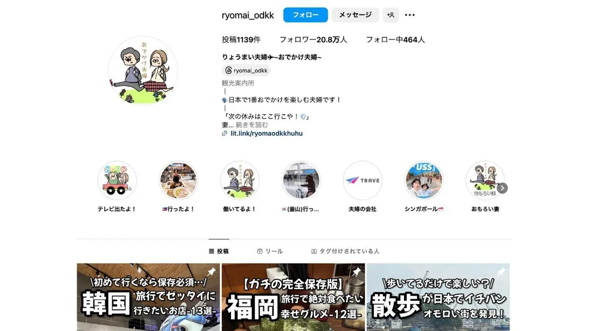 Tabisuru Futari, or Traveling Two, is an Instagram account run by a couple who have visited all 47 prefectures of Japan, amassing a significant follower count among teens. Their posts capture the allure of Japan, featuring visually engaging thumbnails that entice followers to explore their content.