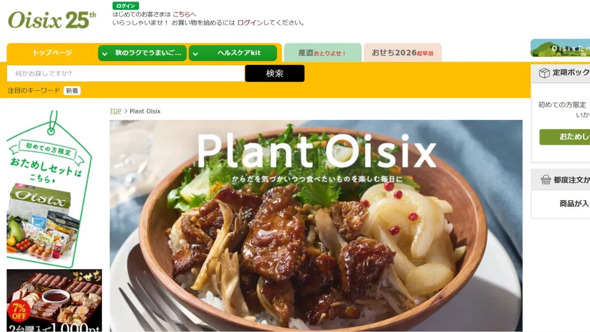 Purple Carrot, originally from the U.S., launched in Japan via Oisix in October 2019, offering convenient vegan meal kits for those looking to adopt an "occasional vegan" eating habit. Each kit includes all plant-based ingredients and easy-to-follow recipes, taking about 20 minutes to cook—examples include teriyaki rice bowl and mala yakisoba.