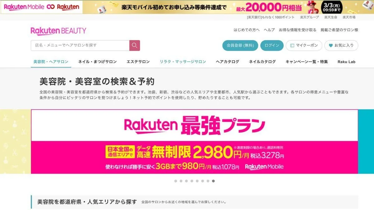 Source: Page d'accueil de Rakuten Beauty