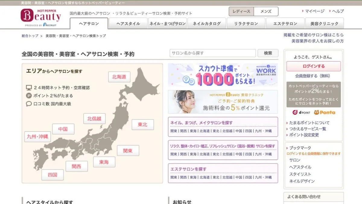 Source: Page d'accueil de Hot Pepper Beauty