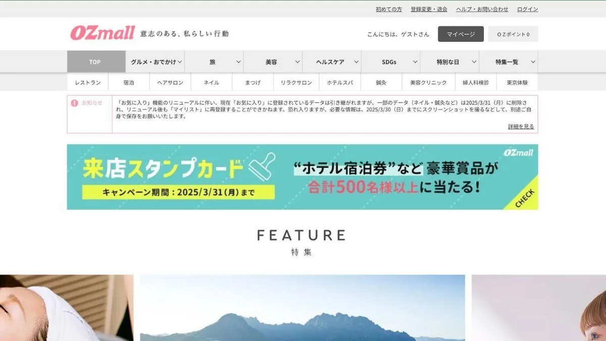 Source: Page d'accueil d'OZmall