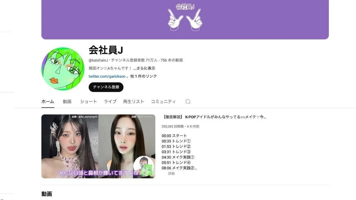Kaishain J, ou « employée J », est une YouTubeuse spécialisée dans les tendances beauté coréennes. Elle fait des critiquesCosmétiques et produits de soins de la peau coréensElle propose des conseils d'utilisation, partage les tendances beauté locales et réalise des vlogs sur son quotidien en Corée. Sa parfaite maîtrise du coréen lui permet de diffuser les dernières tendances beauté directement de Corée, ce qui explique sa grande popularité au Japon.