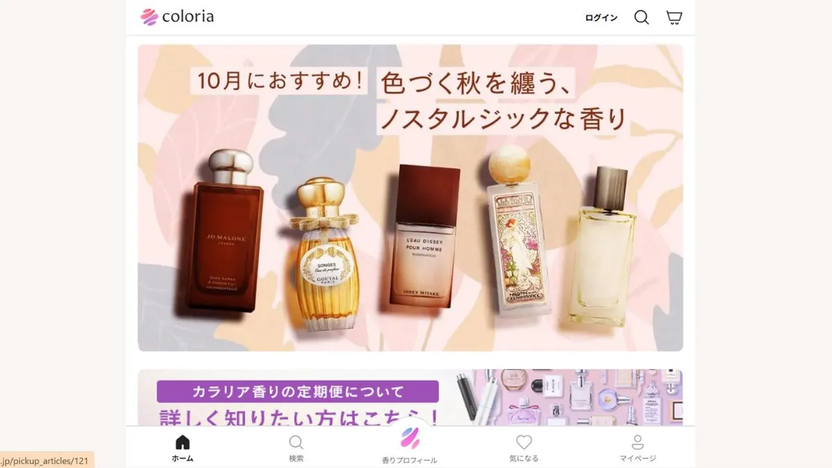 COLORIA est un service d'abonnement japonais dédié aux parfums. Chaque mois, il propose des parfums en format voyage de marques reconnues et émergentes, permettant ainsi de découvrir différentes fragrances selon son humeur ou l'occasion. Les débutants peuvent facilement tester divers parfums, et il est possible d'acheter les flacons grand format si l'on a un coup de cœur. COLORIA propose également des guides pour apprécier pleinement les parfums, ce qui en fait le service idéal pour ceux qui souhaitent enrichir leur collection. Des parfums saisonniers et en édition limitée sont régulièrement lancés, pour un service toujours renouvelé et captivant.