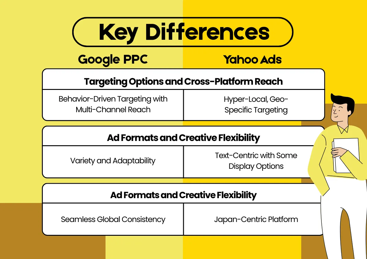 Utilisez Google Ads pour des campagnes globales axées sur le comportement et intégrées sur plusieurs canaux. Privilégiez Yahoo Ads lorsque le ciblage ultra-local au Japon est prioritaire.
