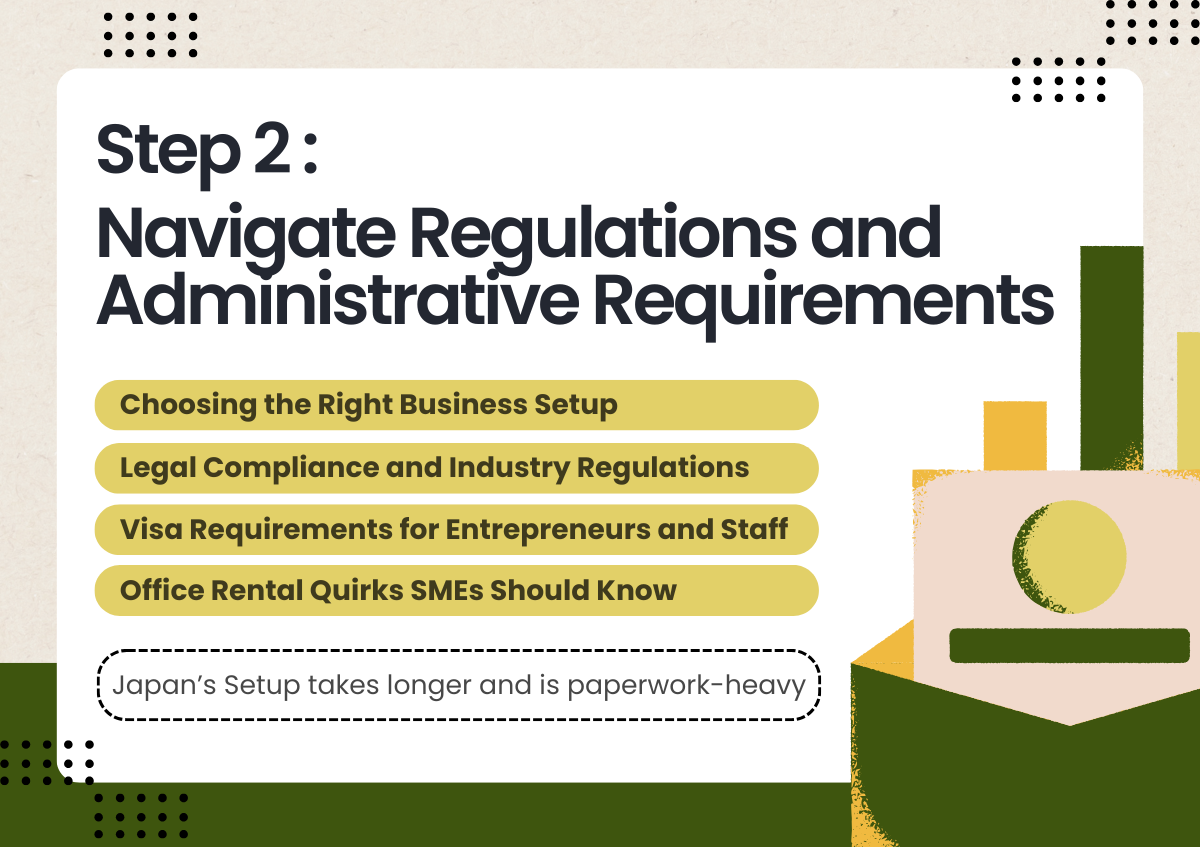 Même après avoir identifié des opportunités au Japon, les PME sont souvent confrontées à l'un des aspects les plus difficiles de leur entrée : naviguer dans l'environnement administratif et réglementaire. Contrairement à des marchés tels que Singapour ou Hong Kong, où les procédures sont rapides et rentables, le système japonais est plus formel, plus axé sur les relations et plus réglementé. Une planification minutieuse est essentielle pour éviter des erreurs coûteuses.