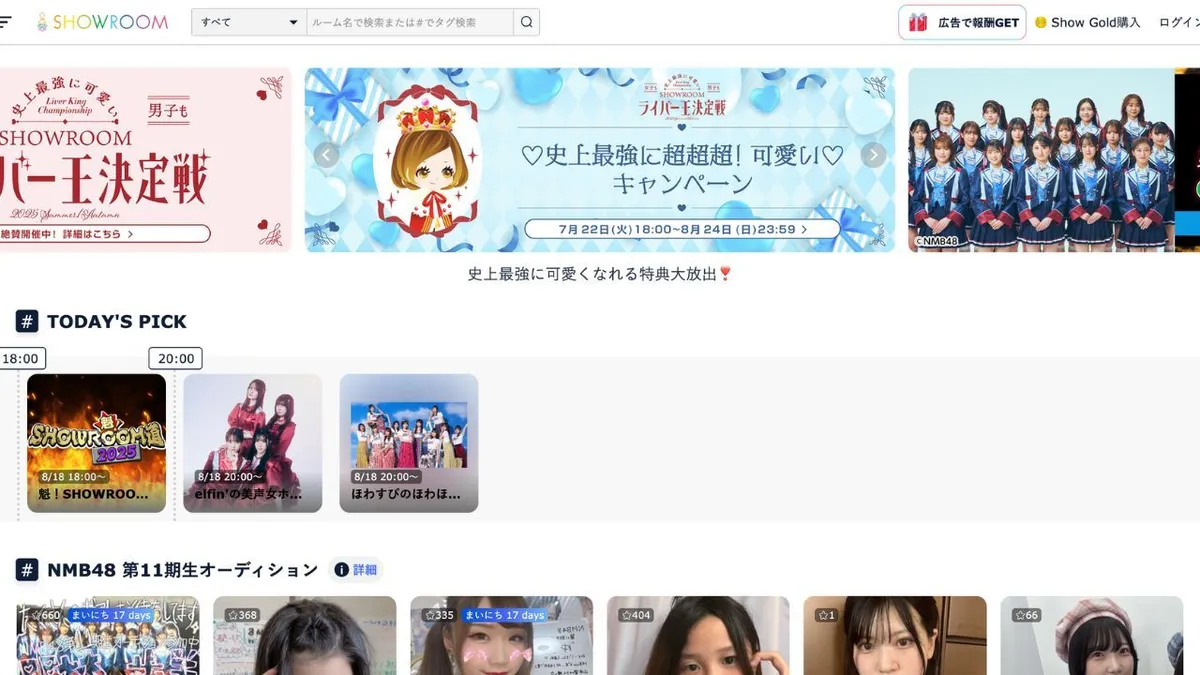 SHOWROOM a été initialement créée comme une plateforme de diffusion en direct pour les groupes d'idoles comme AKB48. Aujourd'hui, elle est devenue une plateforme de streaming tout-en-un et diversifiée, utilisée par un large éventail de créateurs, notamment des artistes, des comédiens de doublage et des VTubers.