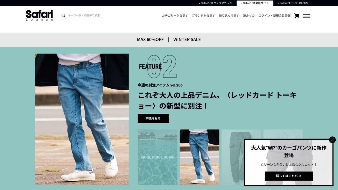 Safari s'inspire du style décontracté de la côte ouest américaine et séduit principalement les hommes de 30 à 40 ans. Le magazine promeut un mode de vie actif, proche de la nature, de l'océan et des activités de plein air, trouvant un écho auprès des lecteurs qui apprécient les grands espaces et une vie saine. Mettant l'accent sur le denim, les lunettes de soleil et les baskets, et proposant des articles sur la vie en station balnéaire et les escapades de week-end, Safari capture l'essence même de l'homme urbain vivant au plus près de la nature.