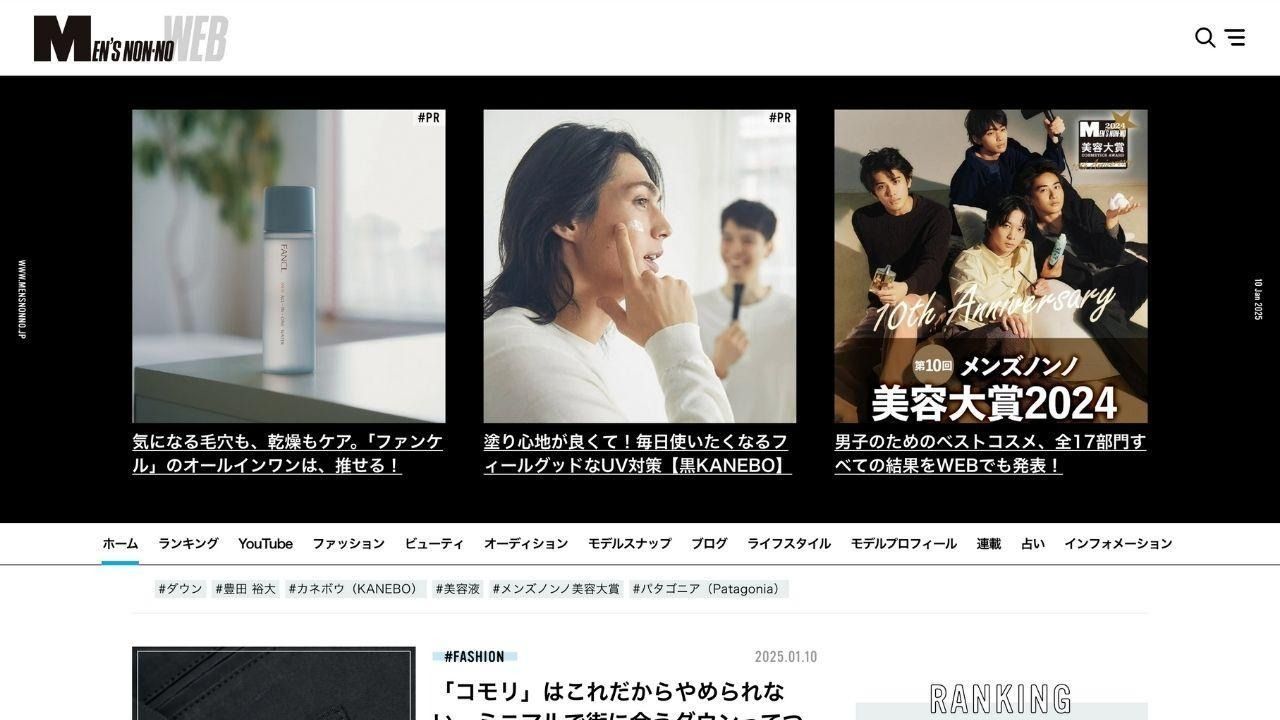 Men’s Non-No est un magazine de mode populaire auprès des jeunes hommes, en particulier ceux âgés de la fin de la vingtaine à la fin de la vingtaine.s'adresse aux lecteursToujours à l'affût des dernières tendances, ce magazine propose des guides de style clairs et des idées de tenues. Réputé pour son approche de la mode urbaine et des styles décontractés, il est devenu une référence pour la culture jeune au Japon. Mettant en scène des mannequins et des célébrités, sa qualité visuelle exceptionnelle en fait un magazine incontournable pour les jeunes hommes passionnés de mode.