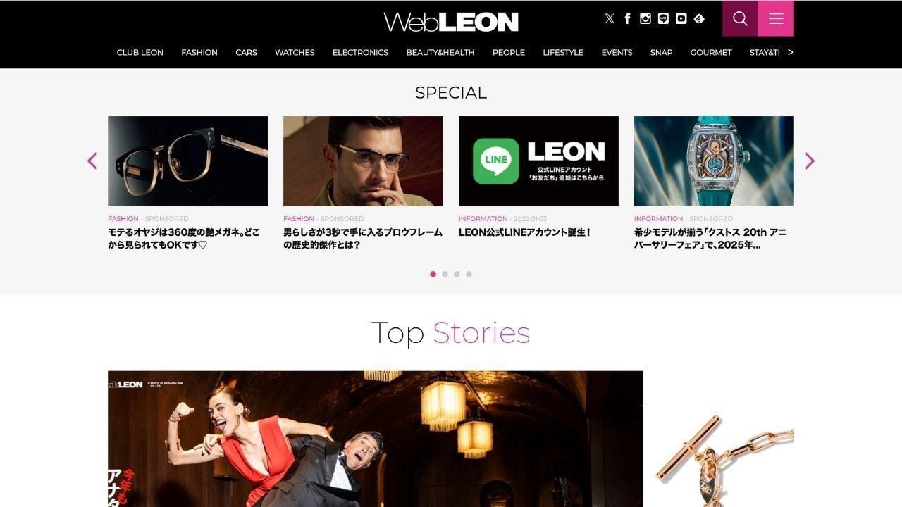 Leon est un magazine de mode haut de gamme destiné aux hommes de la fin de la trentaine à la cinquantaine. Réputé pour son concept de « Choi Waru Oyaji » (l'homme mûr élégant), il allie élégance et originalité. Le magazine met en avant des articles de marques de luxe et des façons sophistiquées de les porter, s'adressant aux hommes soucieux d'avoir une allure impeccable au travail comme dans leur vie privée. Outre la mode, Leon propose un contenu riche sur la gastronomie, les voyages, l'automobile et l'art de vivre, ce qui en fait une lecture incontournable pour ceux qui recherchent un style de vie raffiné et luxueux.