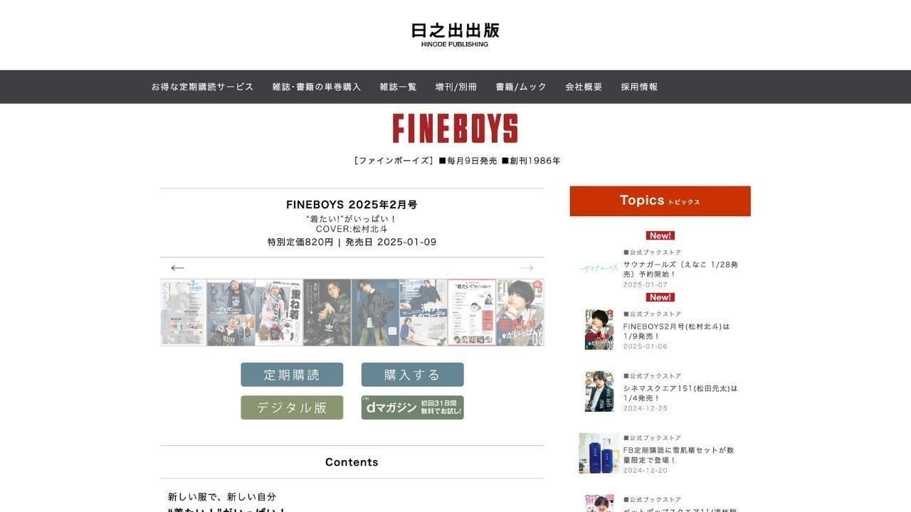 Fineboys est un magazine de mode décontractée destiné aux étudiants et aux jeunes hommes d'une vingtaine d'années qui souhaitent rester élégants sans se ruiner. Il propose des idées de tenues pratiques et met en avant des marques abordables, ce qui en fait le magazine idéal pour les lecteurs à la recherche de vêtements tendance à prix accessibles. Outre la mode, le magazine aborde divers sujets.soins de la peau, les coiffures et les derniers gadgets, offrant un aperçu précieux de divers aspects du mode de vie des jeunes hommes.