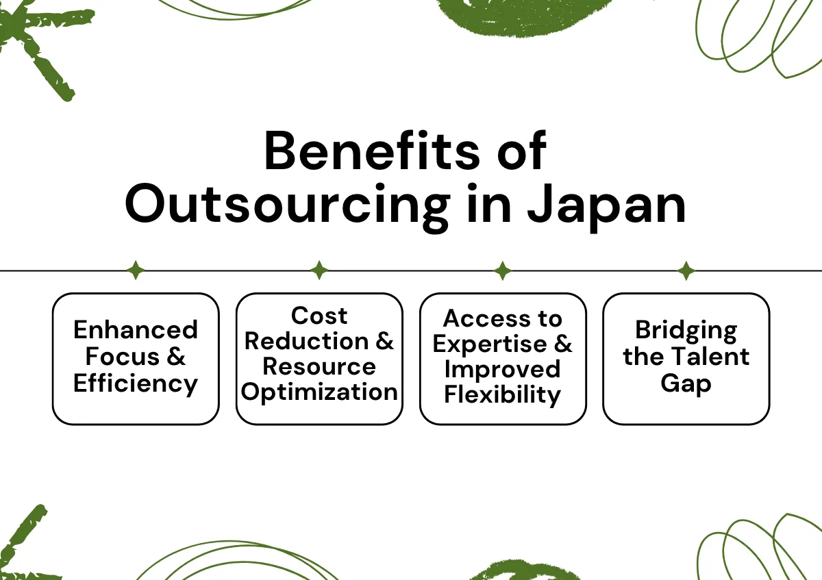 L'externalisation offre des avantages considérables aux entreprises japonaises, notamment une meilleure concentration et une efficacité accrue, des réductions de coûts substantielles et l'accès à une expertise pointue. En tirant parti de ressources externes, les entreprises peuvent rationaliser leurs opérations, optimiser leurs budgets et stimuler l'innovation, ce qui leur permet d'améliorer leur compétitivité sur le marché.