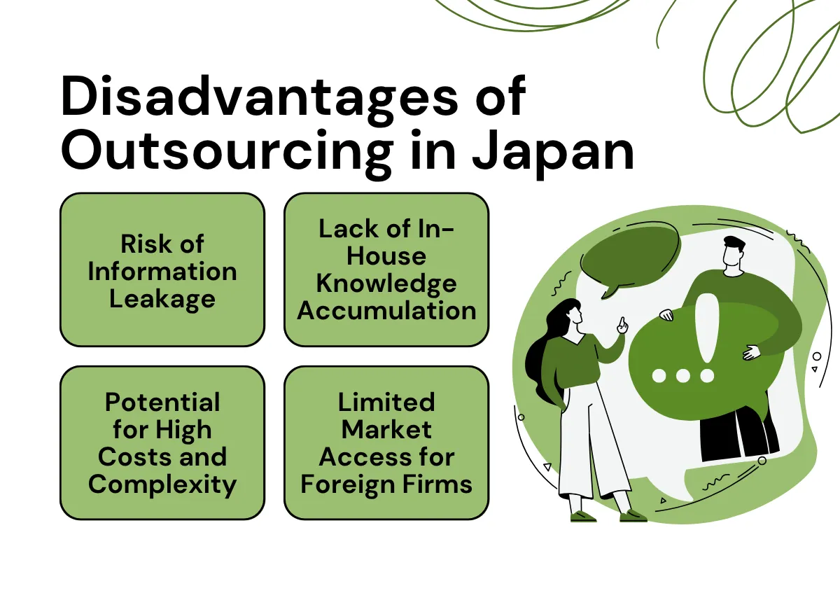 Un élément juridique important à prendre en compte est que si une entreprise donne des instructions directes à des travailleurs externalisés sans passer par le fournisseur d'externalisation, cela pourrait donner lieu à un « contrat déguisé » ou « giso ukeoi » (偽装請負), ce qui est illégal au Japon.