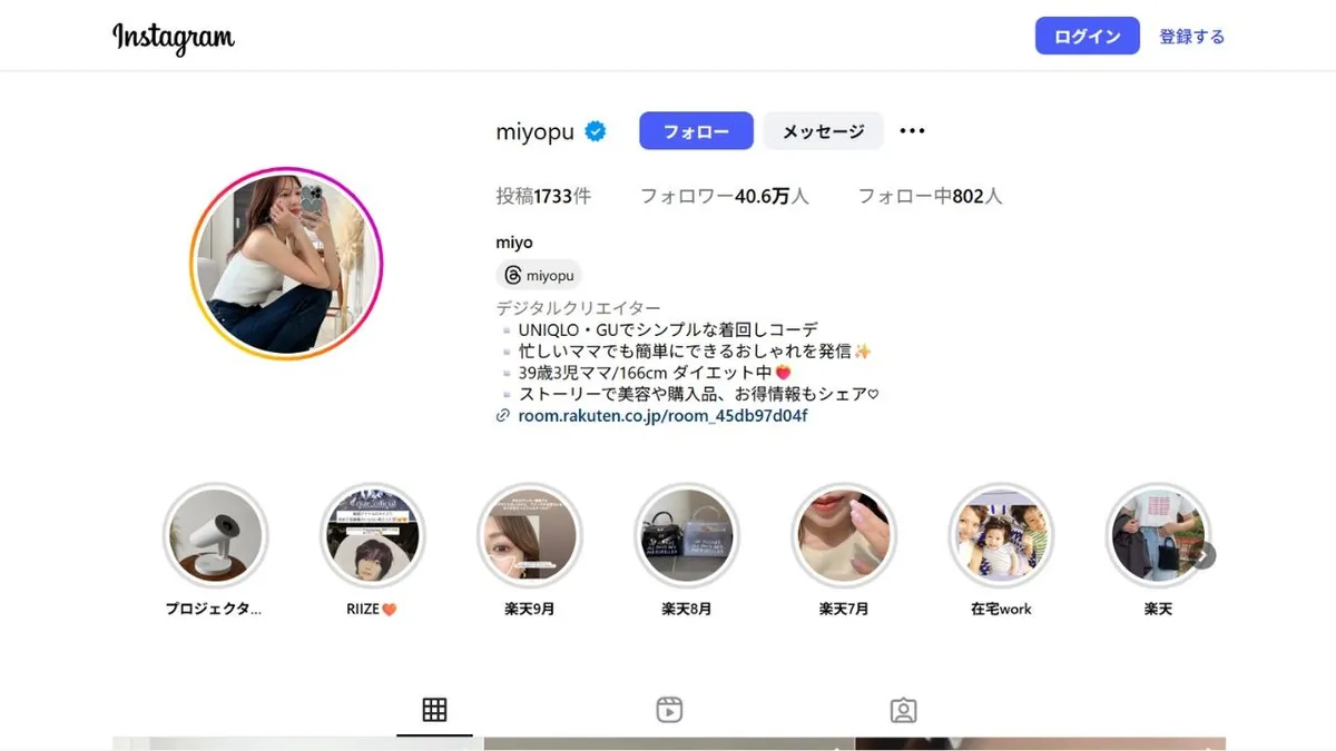 Miyopu est unorientés modeInfluenceuse parentale : mère de trois enfants, elle propose un style « réel » pour les mamans actives, notamment grâce à des marques de mode abordables et accessibles (comme UNIQLO et GU). Sa marque vise à prouver que, même avec les responsabilités parentales, on peut composer des tenues élégantes et soignées tout en se sentant bien dans sa peau. Son public cible est principalement composé de mères qui souhaitent…inspiration modec'est pratique, économique etapplicable à la vie quotidienne(emmener les enfants à l'école, les sorties entre amis, les courses). Pour les marques de mode ciblant les parents, et notamment le style « maman », elle apporte à la fois de la crédibilité (en tant que mère) etbranché.
