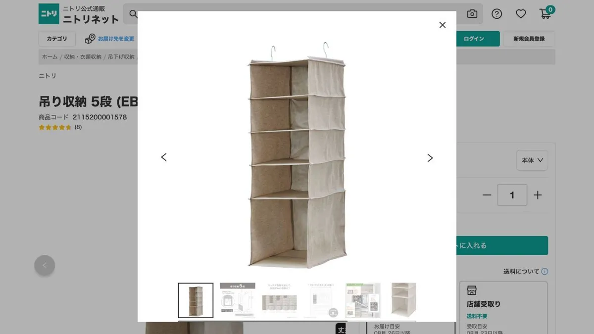 2. Organiseur suspendu en tissu Nitori à 5 poches
