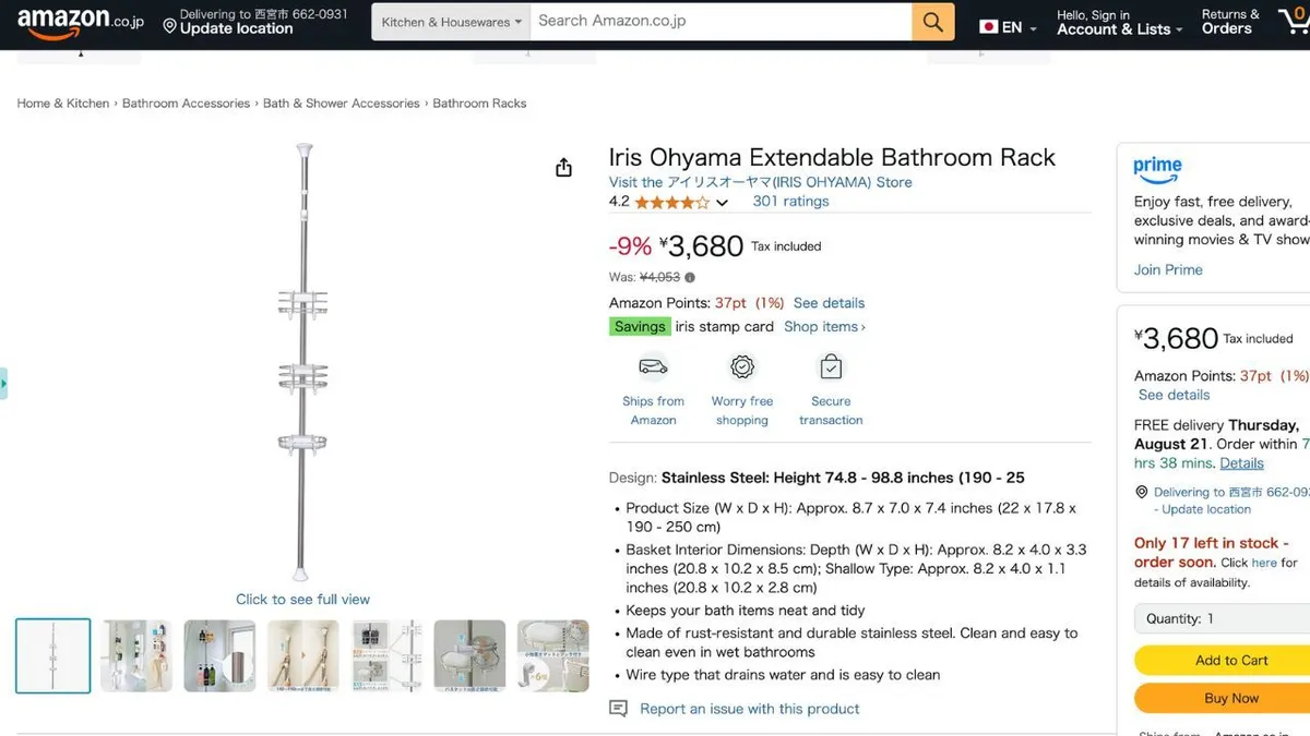 11. Étagère de rangement pour toilettes IRIS OHYAMA à tension