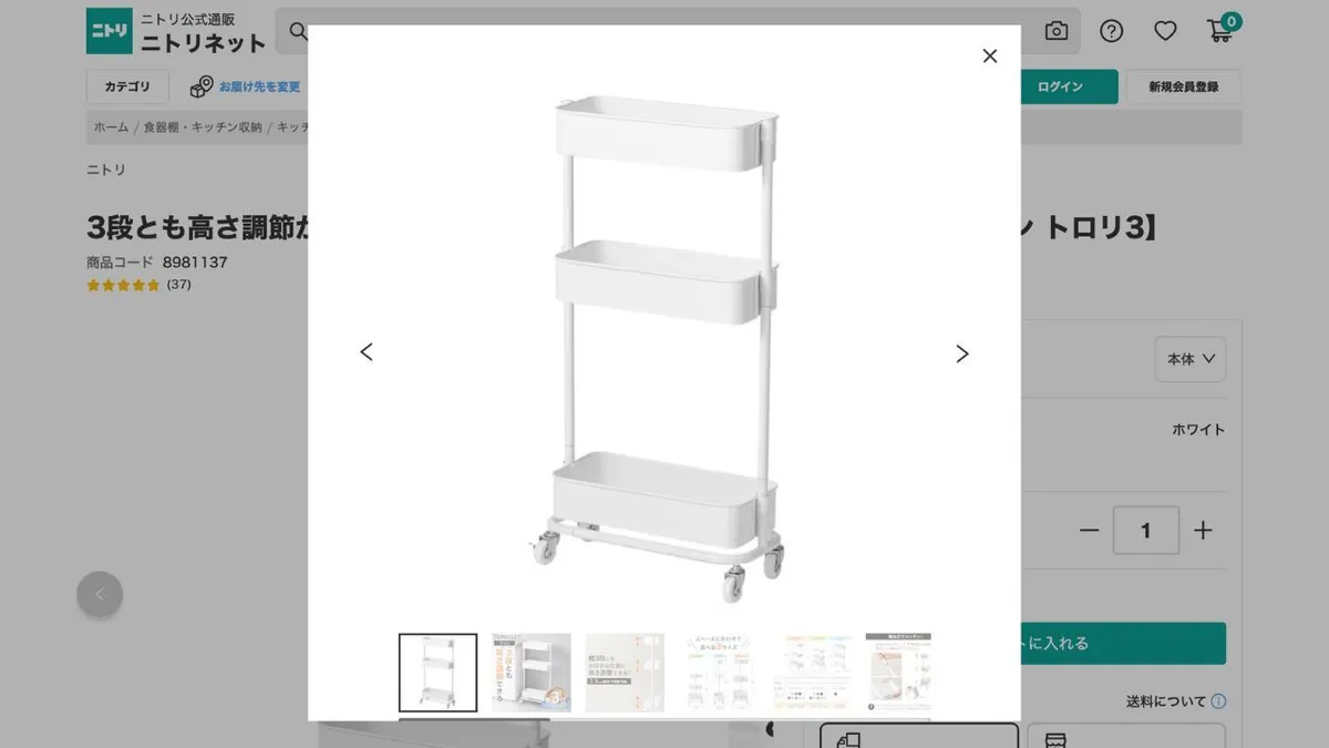 12. Chariot de rangement Nitori Slim à 3 niveaux