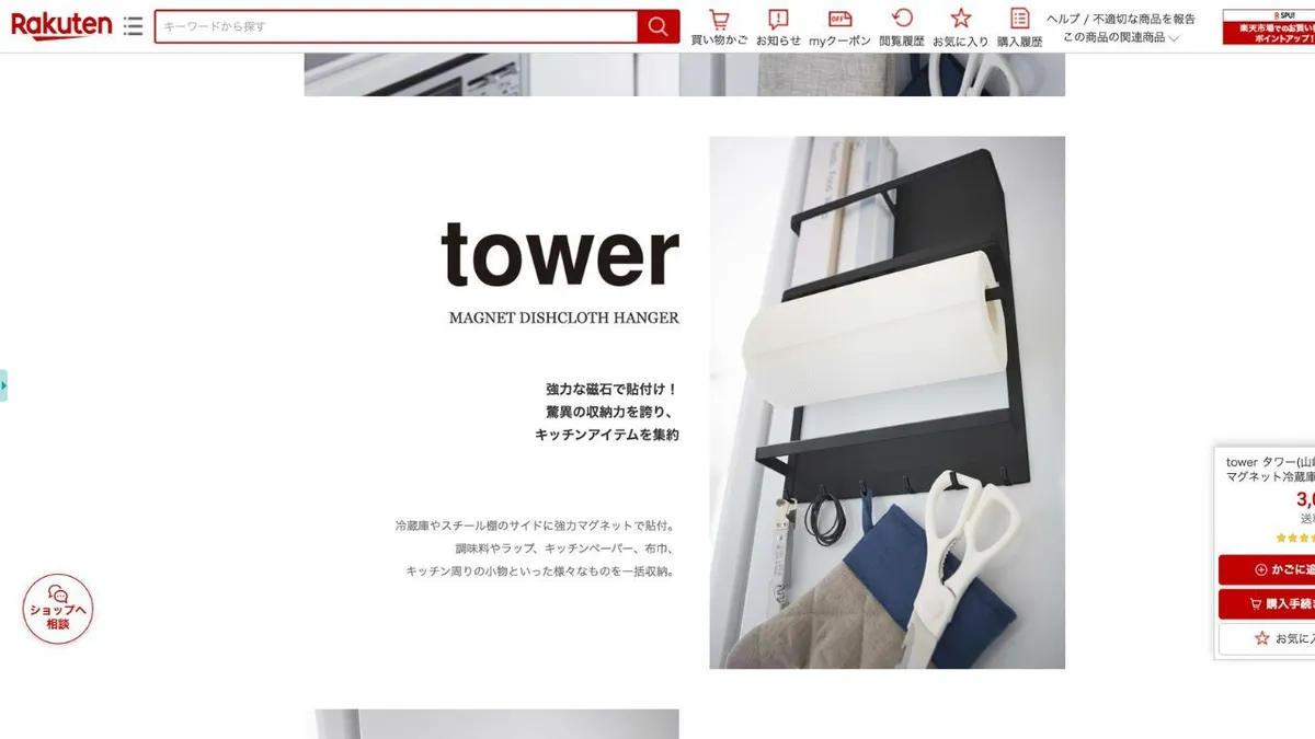 3. Support latéral magnétique pour réfrigérateur Yamazaki Tower