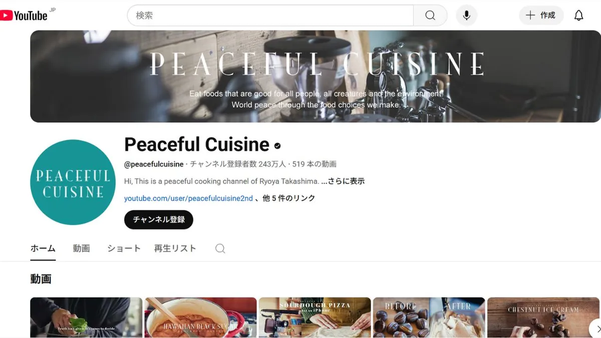 La chaîne de Ryoya Takashima, Peaceful Cuisine, est une incarnation cinématographique d'une cuisine végétale apaisante. Ses vidéos se caractérisent souvent par une narration minimale, des sons d'ambiance doux provenant de la cuisine et des gros plans au ralenti sur les ingrédients et les textures. Plus de 2,4 millions d'abonnés à travers le monde le regardent recréer des plats comme les biscuits Earl Grey,gâteau aux myrtillesDu beurre fermenté végétalien et des beignets de sushi, tous composés exclusivement de plantes. L'approche esthétique de Ryoya séduit une clientèle internationale attirée par la cuisine consciente, le bien-être et une esthétique visuellement poétique.l'art culinaire.