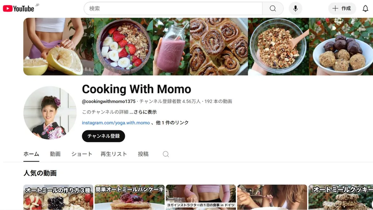 L'émission « Cooking With Momo » est animée par Momo, un groupe de cuisine.professeur de yogaElle vit en Europe et partage des recettes végétaliennes ainsi que du contenu bien-être. Sa chaîne YouTube propose des desserts à base de flocons d'avoine et d'okara, des vlogs de repas d'une journée et des vidéos de courses. Les vidéos sont diffusées en alternance en japonais et en anglais, ce qui les rend accessibles à un public international.intéressé par les questions de santé, cuisine végétalienne de saison.