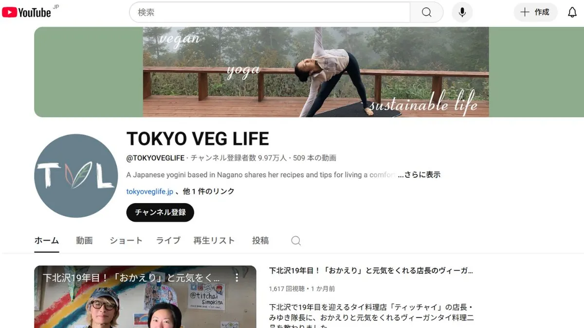 Tokyo Veg Life, dirigé par Natsuki, allie cuisine végétalienne, yoga, conscience environnementale et coaching de style de vie. Basée à Nagano, elle proposedes recettes nourrissantes mais simplesParallèlement à des réflexions sur le bien-être, le développement durable et l'épanouissement personnel, Natsuki, avec plus de 100 000 abonnés, propose une cuisine végétalienne accessible et une philosophie de vie consciente qui trouvent un écho auprès des personnes en quête d'équilibre entre leur corps et la planète.