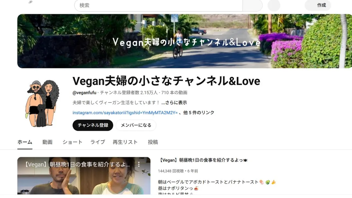 Un couple de Japonais végétaliens anime « Vegan Couple's » sur la chaîne YouTube « Love », où ils partagent leur quotidien, de leurs courses chez Costco ou iHerb à leurs créations culinaires. Leurs vlogs, chaleureux et humoristiques, mettent en scène des repas végétaliens dans un contexte convivial et authentique. Leur complicité rend le véganisme accessible, ludique et facile à vivre pour les couples et les familles.