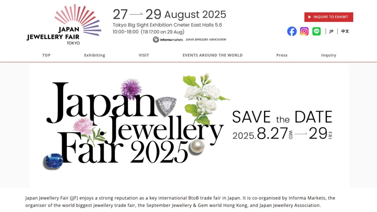 일본 주얼리 페어(JJF)는 인포마 마켓과 일본 주얼리 협회가 공동 주최하는 일본 최고의 B2B 주얼리 무역 박람회입니다. 이 행사는 전 세계 바이어와 일본 주얼리 전문가 간의 장기적인 비즈니스 관계 구축을 촉진하는 것으로 잘 알려져 있습니다.