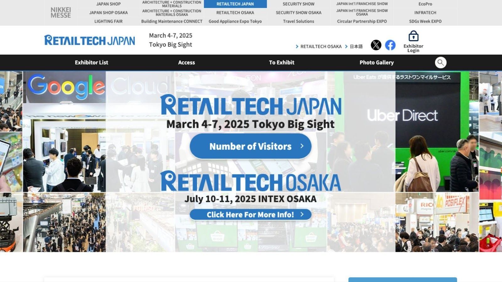 RetailTech Japan은 일본 최대 규모이자 가장 영향력 있는 소매 기술 및 혁신 박람회입니다. 닛케이(Nikkei Inc.)가 주최하는 이 행사는 소매, 물류, 디지털 마케팅 분야의 주요 기업들을 한자리에 모아 미래의 쇼핑 경험에 대한 통찰력을 제공합니다.