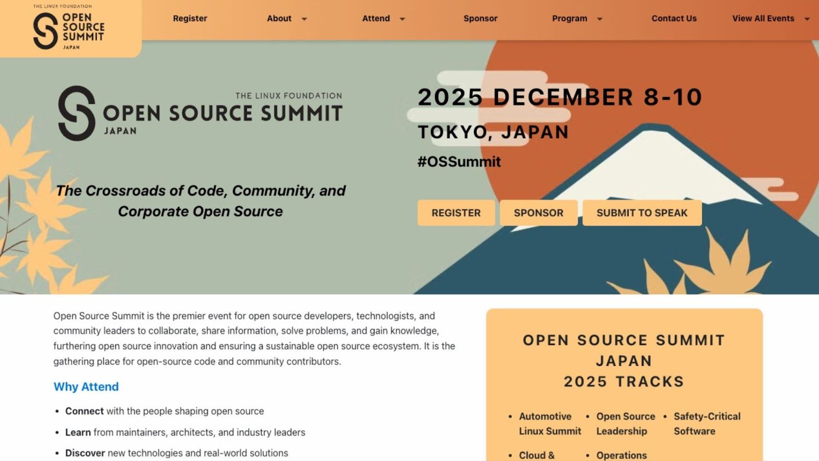 오픈 소스 서밋 재팬은 단순한 컨퍼런스가 아니라 미래의 디지털 기반을 구축하고 유지하는 사람들이 모이는 장입니다. 리눅스 개발에 기여하든, 오픈 거버넌스를 탐구하든, 기업의 오픈 소스 도입을 위해 노력하든, 이 서밋은 커뮤니티의 중요한 초석이 될 것입니다.