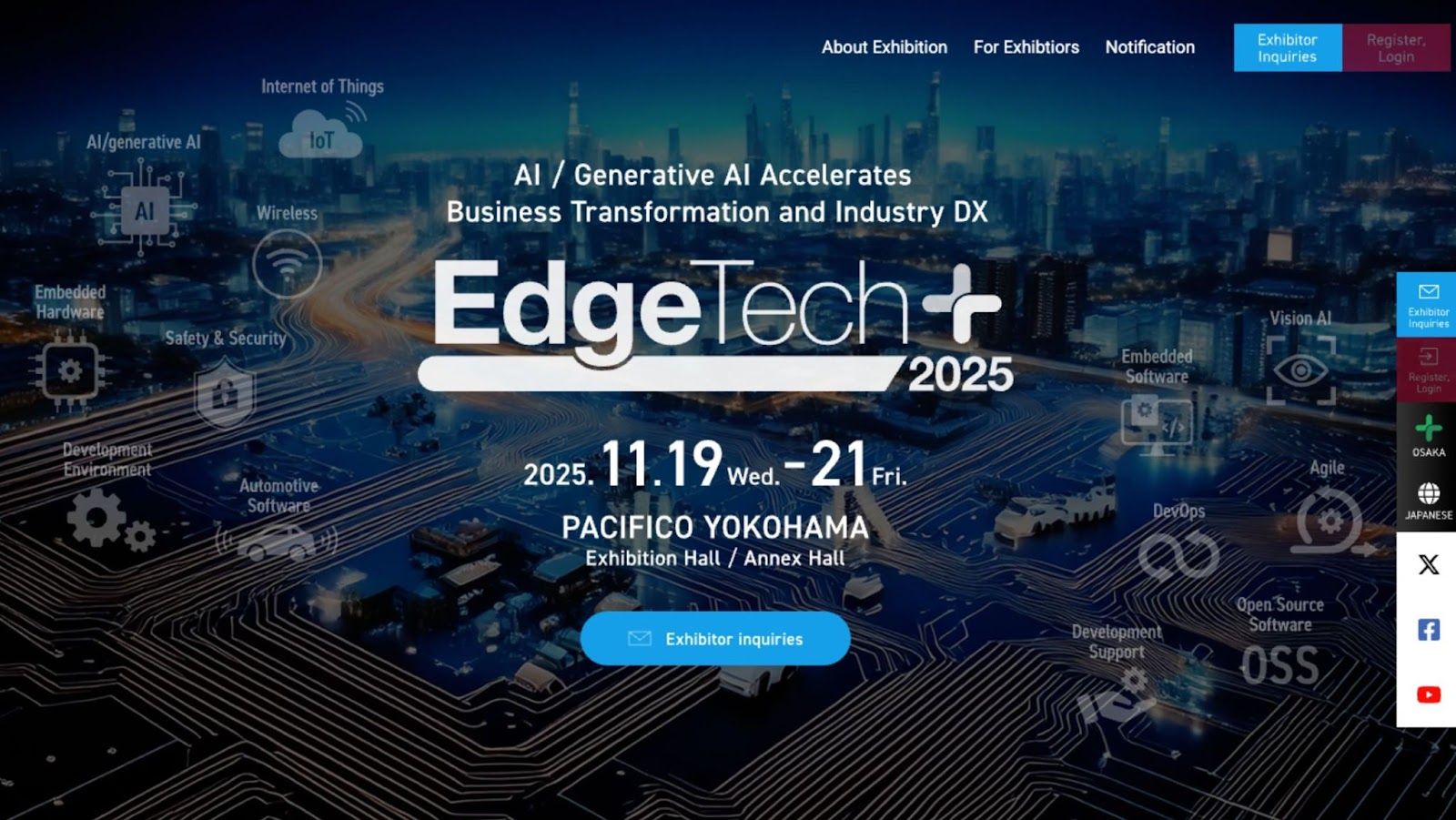 엣지테크플러스는 1986년 마이크로컴퓨터 기술 박람회로 시작하여 오랜 역사와 끊임없는 발전을 거듭해 온 전시회입니다. 현재는 엣지 컴퓨팅과 사물인터넷(IoT)에 초점을 맞춰 임베디드 시스템, 엣지 AI, 실시간 운영체제, 차세대 연결 기술을 선보이는 일본 최고의 플랫폼으로 자리매김했습니다. 이 행사는 엣지 기술을 통한 가치 중심의 디지털 전환을 강조합니다.