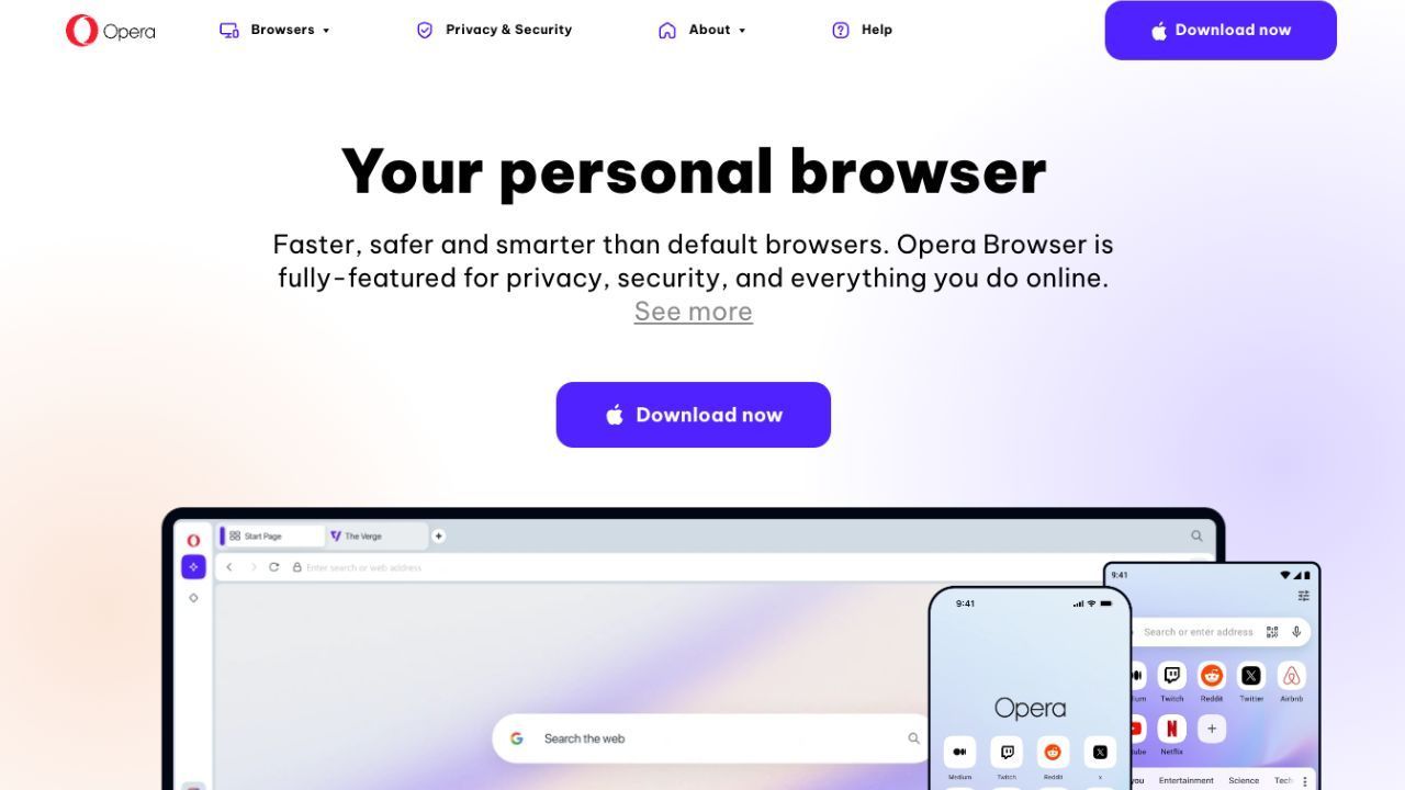 시장 점유율 0.7%를 차지하는 오페라는 내장 VPN, 광고 차단 기능, 그리고 느린 인터넷 연결에서도 브라우징 속도를 향상시키기 위해 데이터를 압축하는 "오페라 터보" 기능으로 두각을 나타냅니다. 깔끔한 인터페이스와 편리한 사이드바 바로가기는 간소화된 사용자 경험을 제공하여 개인 정보 보호와 효율적인 데이터 사용을 중시하는 사용자에게 선호되는 선택입니다. 오페라는 특히 다음과 같은 사용자층에서 인기가 높습니다.기술에 정통한이 제품의 고유한 도구, 맞춤 설정 옵션 및 강력한 개인 정보 보호 기능을 중요하게 생각하는 사용자들입니다.