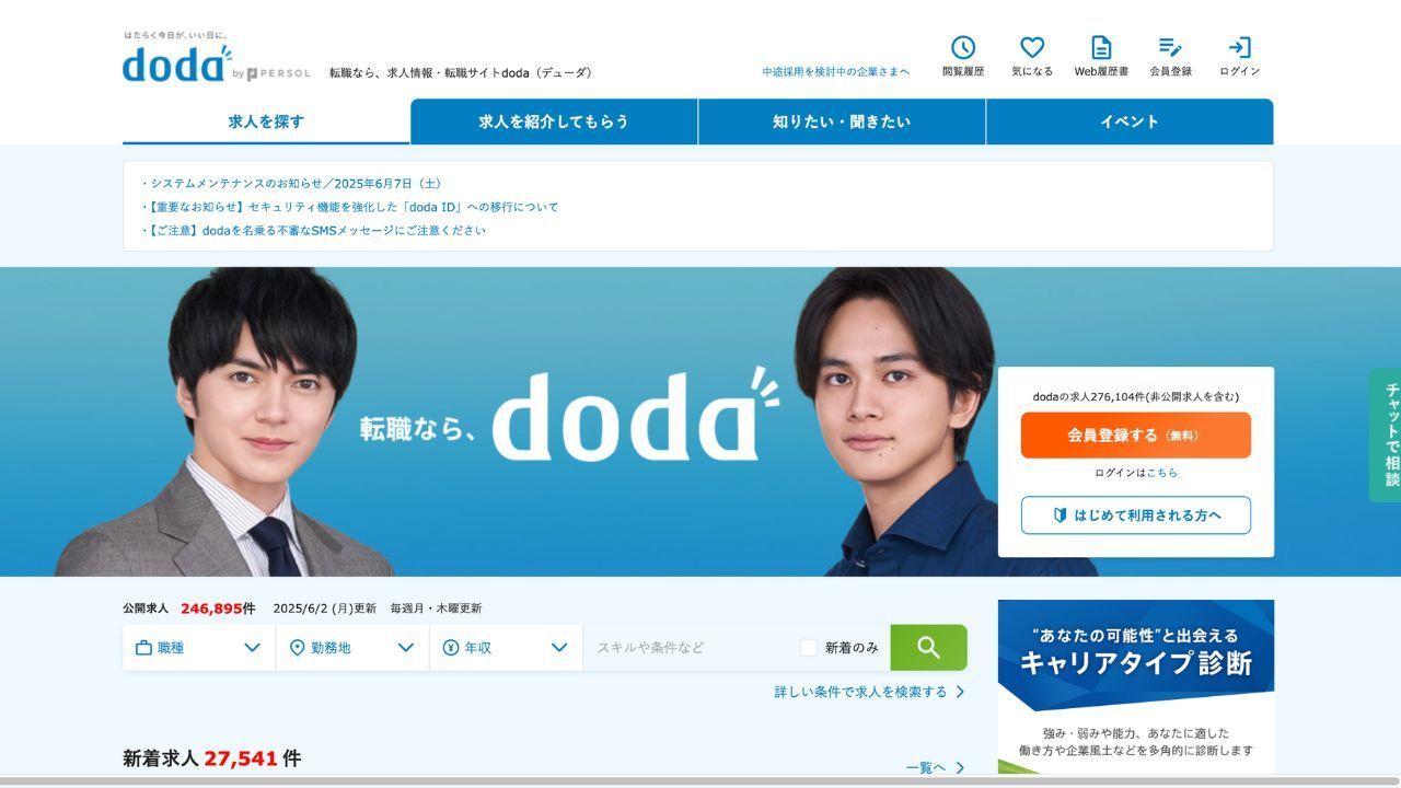 840만 명의 회원과 29만 5천 건의 구인 공고를 보유한 Doda는 다양한 연령대를 대상으로 구인 정보 제공과 채용 서비스를 하나의 브랜드로 제공합니다. 기업은 Doda의 다이렉트 메시징 서비스를 통해 특정 경험을 가진 구직자를 대상으로 맞춤형 채용 서비스를 제공할 수 있습니다.기술기업들이 필요로 하는 것을 충족시켜주어 우수한 인재를 더 쉽게 채용할 수 있도록 해줍니다.