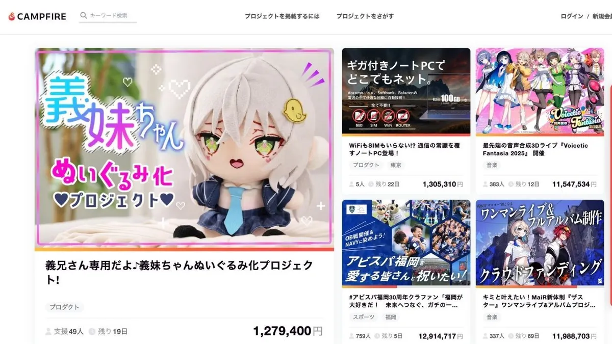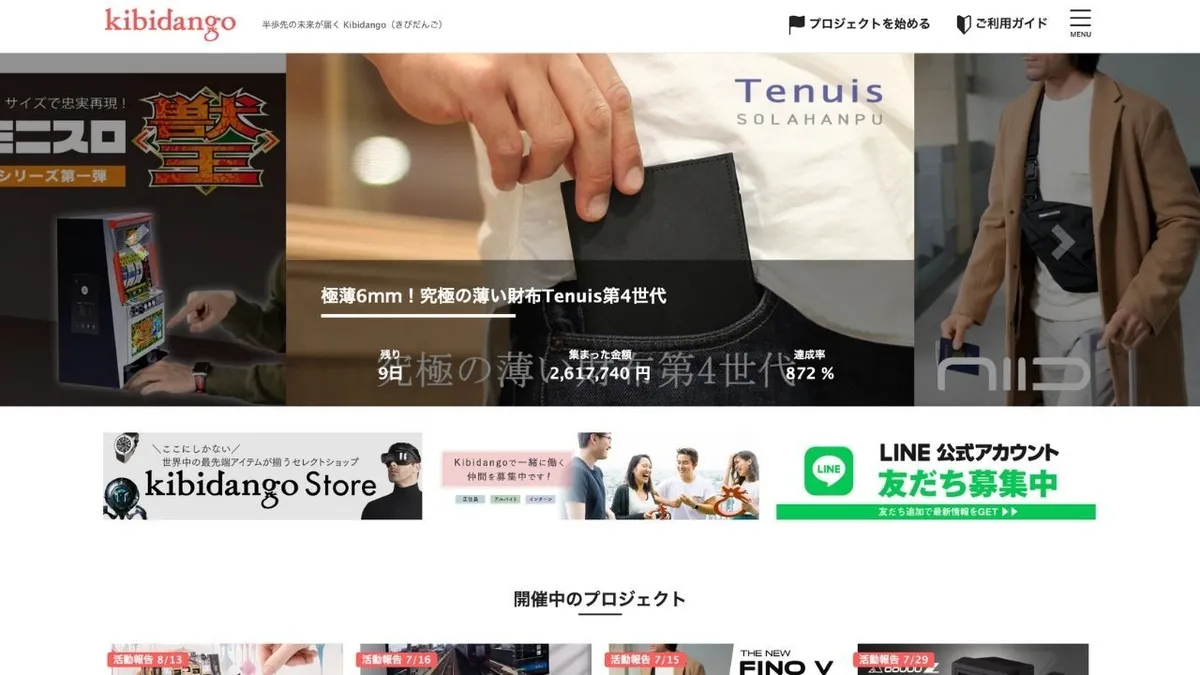 2011년에 설립된 CAMPFIRE는 일본 최대 규모이자 가장 널리 사용되는 크라우드펀딩 플랫폼입니다. 2024년 기준으로 75,000개 이상의 프로젝트를 진행했으며 820억 엔 이상을 모금했습니다. 유연하고 초보자 친화적으로 설계되어 개인, 학생 단체부터 기업, 비영리 단체까지 누구나 이용할 수 있습니다. 개방형 플랫폼으로,사용하기 쉬운 시스템또한 눈에 잘 띄는 위치 덕분에 훌륭한 출발점이 됩니다.