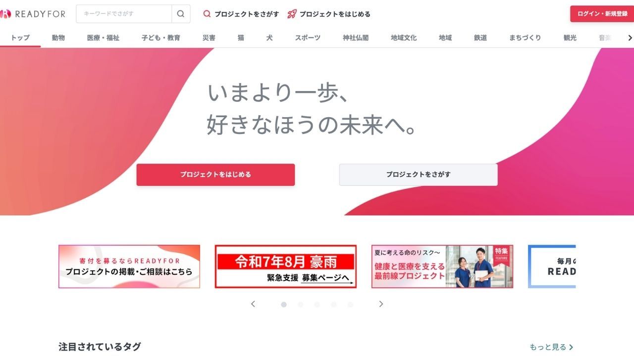 - READYFOR: 사회적 대의를 지원하기 위해 설계되었습니다.