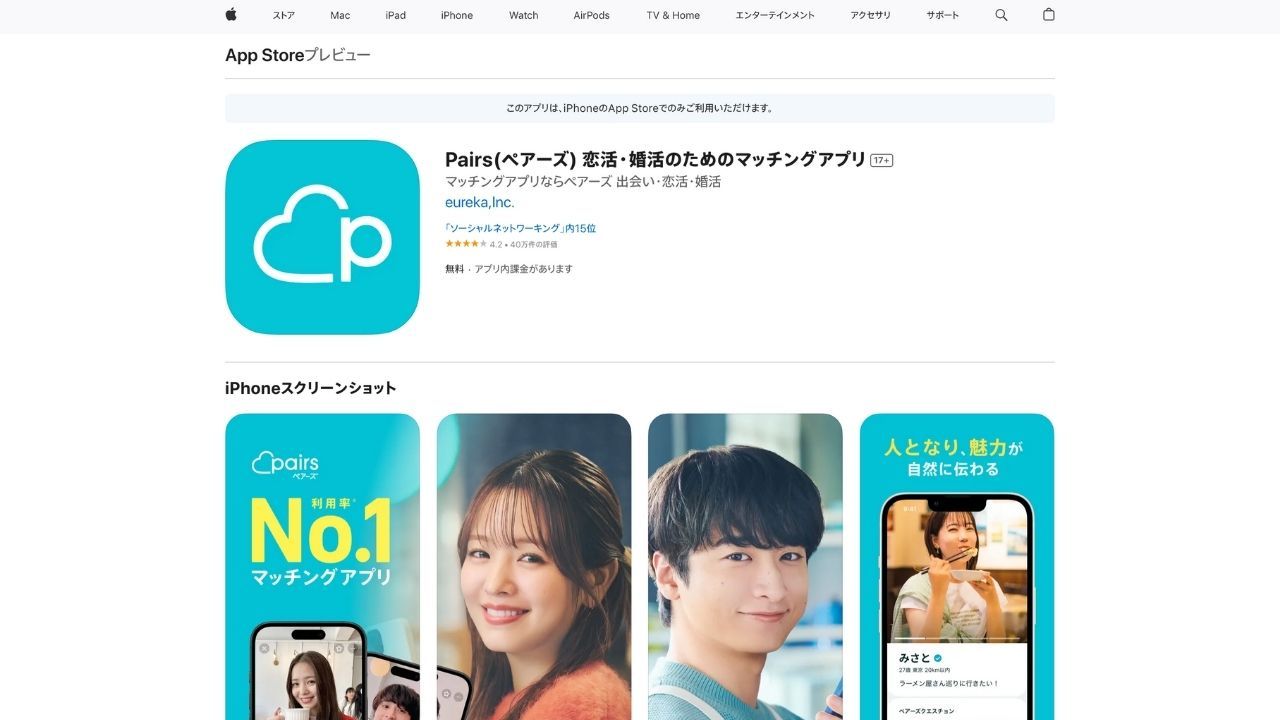 한 만족한 사용자의 의견은 다음과 같습니다."관심사가 비슷한 사람들을 쉽게 만날 수 있고, 편하게 메시지를 주고받을 수 있어요. 게다가 아주 편리하기도 하고요."안전하고 보안이 유지됩니다"세심하게 설계된 기능과 크고 활발한 커뮤니티의 조합 덕분에 Pairs는 일본에서 의미 있는 관계를 찾는 사람들에게 신뢰할 수 있고 효과적인 플랫폼으로 자리매김했습니다.