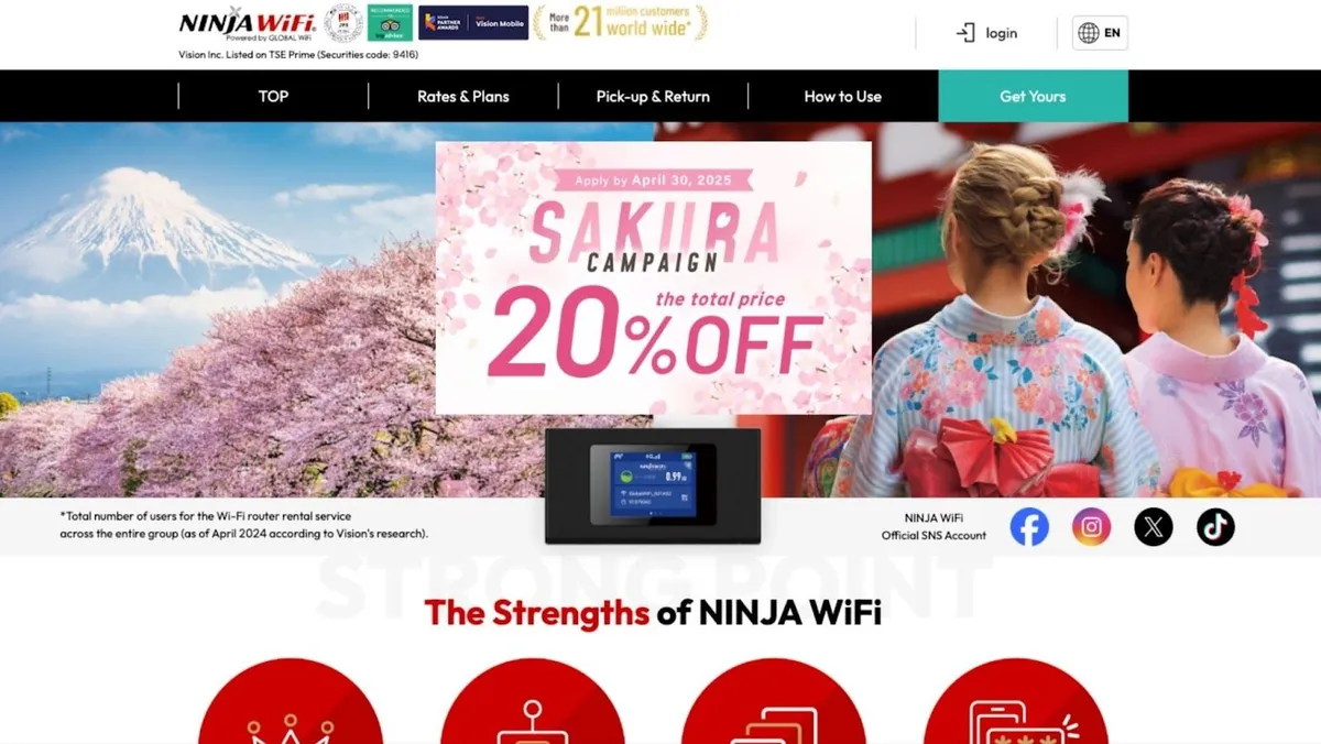 Japan Wireless는 또한 다음과 같은 서비스를 제공합니다.영어 지원일본에 본사를 두고 있어 해외 여행객들에게 믿을 수 있는 선택지입니다.