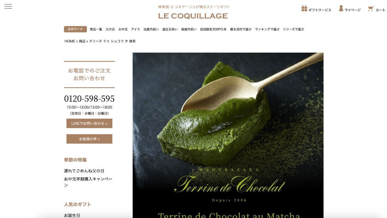 르 코키야주의 글루텐프리 테린은 일본 말차의 전통적인 매력을 그대로 살리면서도 맛은 전혀 타협하지 않아, 가구라자카를 찾는 디저트 애호가들과 외국인 관광객들에게 큰 인기를 얻고 있습니다. 특별한 날이나 우아한 저녁 식사 자리에도 완벽한 선택입니다. 선물.
